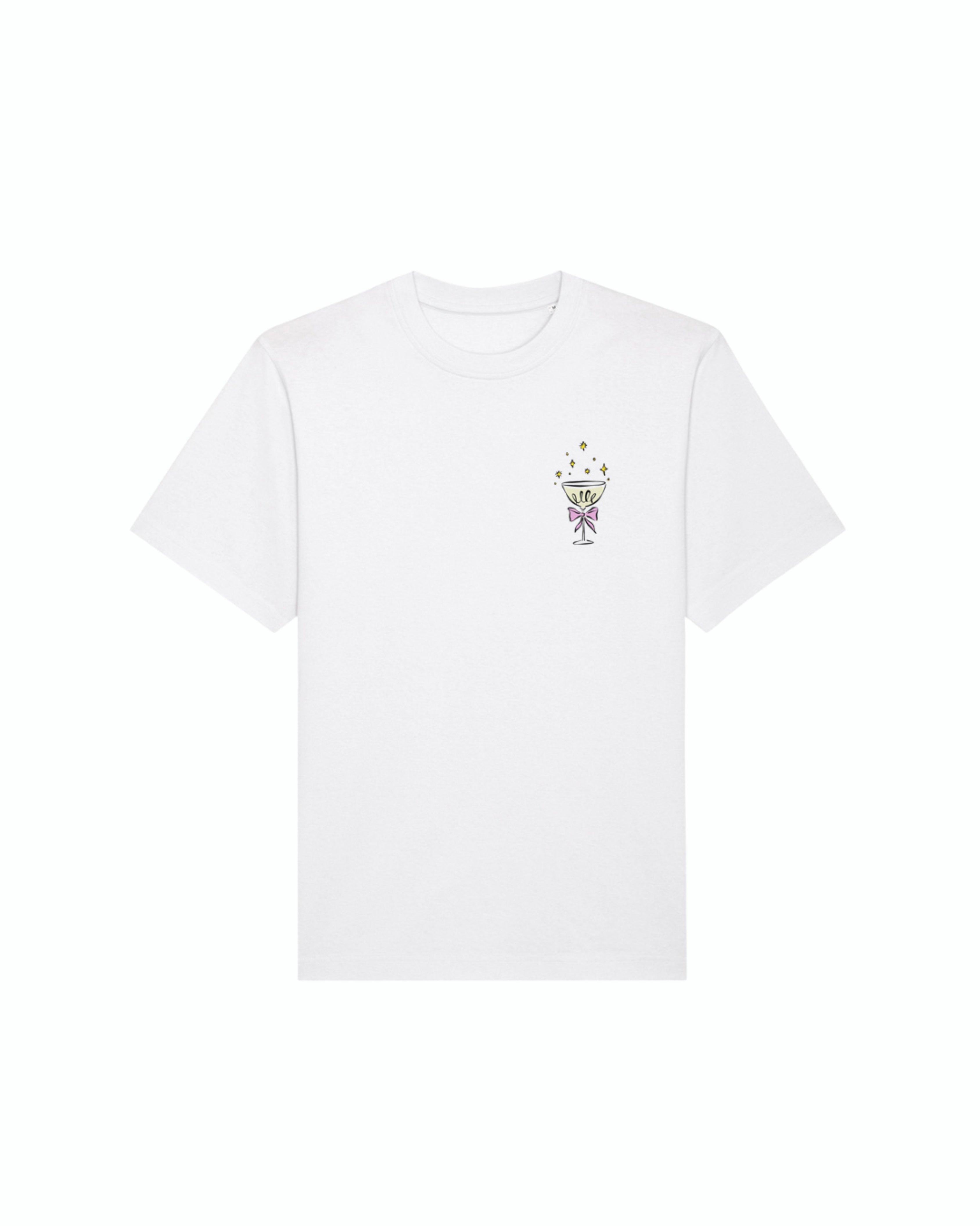 Our Champagne T-Shirt from the Christmas Edit is crafted from 100% organic heavyweight cotton (240gsm) for a soft yet structured feel. Featuring a champagne glass print on the chest and a “More Champagne Please” design in gold foil across the back, it adds a subtle sense of celebration to your look. With its relaxed fit and enduring quality, it’s a piece you’ll wear season after season.