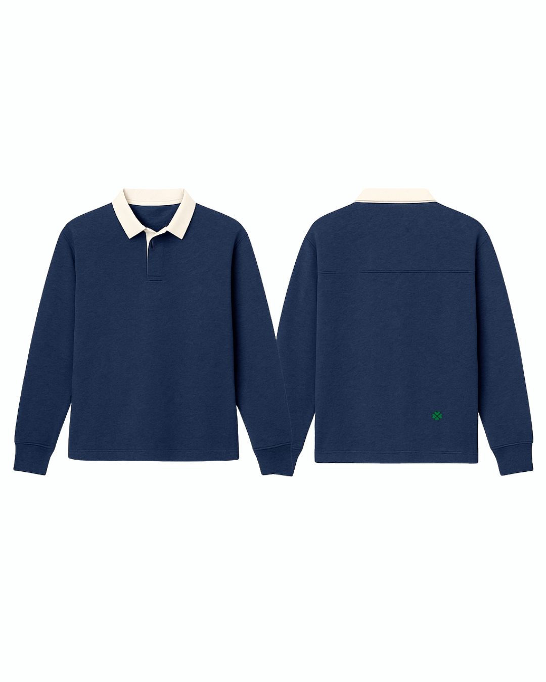 Crafted from heavyweight 300gsm 100% organic cotton, this rugby top blends structure with a comfortable, broken-in feel. Featuring a contrast twill collar, concealed placket, and subtle clover embroidery, it’s a timeless, versatile piece designed for everyday wear and long-lasting style.